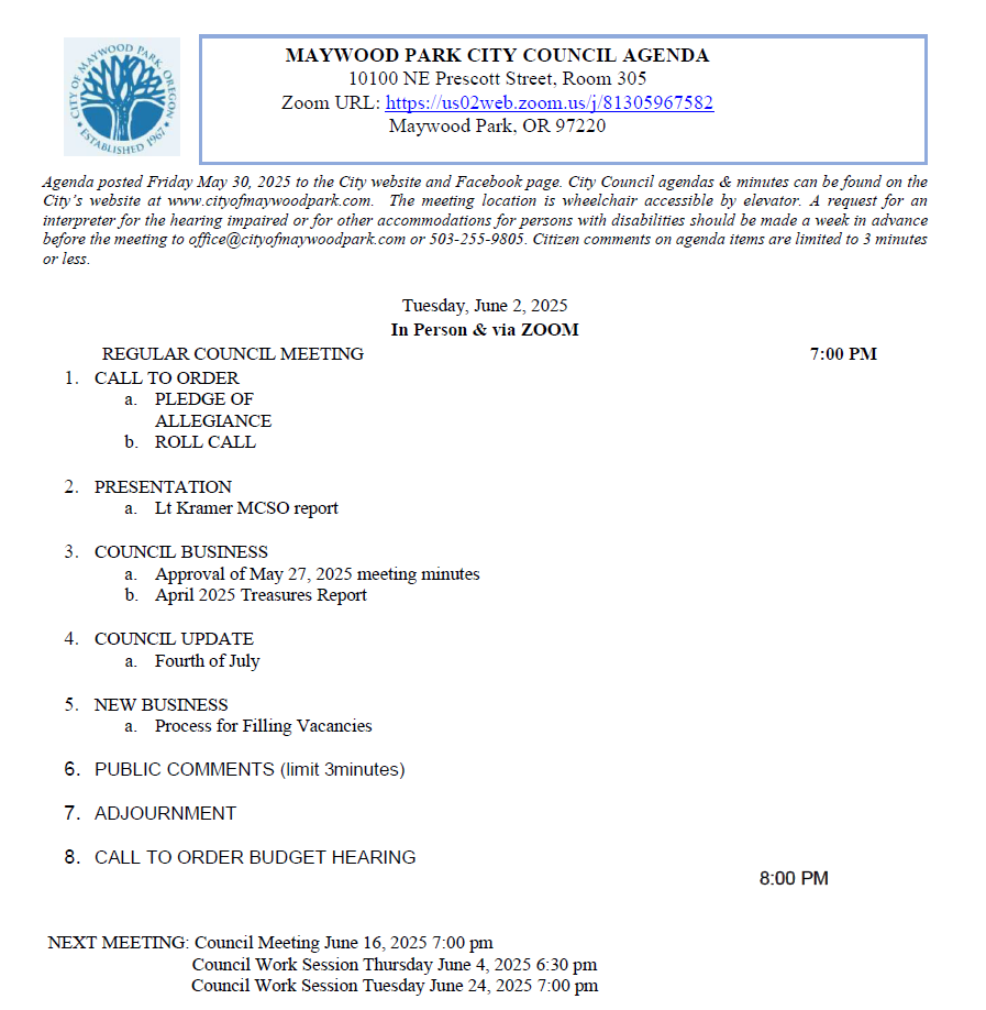 Announcements Dalene Bloom 3/12/26 Announcements Dalene Bloom 3/12/26 Agenda for Council Work Session Monday, March 16, 2026 6:00 pm Read More Ken Strobeck 3/11/26 Ken Strobeck 3/11/26 Easter Egg Hunt Read More Announcements Dalene Bloom 2/26/26 Announcements Dalene Bloom 2/26/26 Agenda for City Council Meeting Monday, March 2, 2026 7:00 pm Read More Announcements Dalene Bloom 2/26/26 Announcements Dalene Bloom 2/26/26 Agenda for Council Work Session Monday, March 2, 2026 5:30 pm Read More Announcements Dalene Bloom 2/19/26 Announcements Dalene Bloom 2/19/26 Agenda for Council Work Session Monday, February 23, 2026 6:00 pm Read More Announcements Dalene Bloom 2/3/26 Announcements Dalene Bloom 2/3/26 Letter of Resignation from Council President Mike Reynolds Read More Announcements Dalene Bloom 2/3/26 Announcements Dalene Bloom 2/3/26 Invitation to apply for appointment to City Council Read More Announcements Dalene Bloom 1/29/26 Announcements Dalene Bloom 1/29/26 Agenda for City Council Meeting Monday, February 2, 2026 7:00 pm Read More Announcements Dalene Bloom 1/20/26 Announcements Dalene Bloom 1/20/26 Announcement From Councilor Aika Topolski, January 18, 2026 Read More Announcements Dalene Bloom 1/16/26 Announcements Dalene Bloom 1/16/26 Agenda for Council Work Session Tuesday, January 20, 2026 6:00 pm Read More Announcements Dalene Bloom 1/15/26 Announcements Dalene Bloom 1/15/26 Agenda for Council Work Session Tuesday, January 20, 2026 6:00 pm Read More Announcements Dalene Bloom 1/8/26 Announcements Dalene Bloom 1/8/26 Agenda for Council Retreat Sunday, January 11, 2026 12:00 pm Read More Older Posts